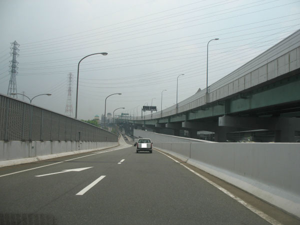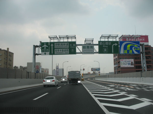 名古屋高速環状線から3号大高線へ。大高出口を出るとそのまま国道23号(高架式片側3車線)に合流。